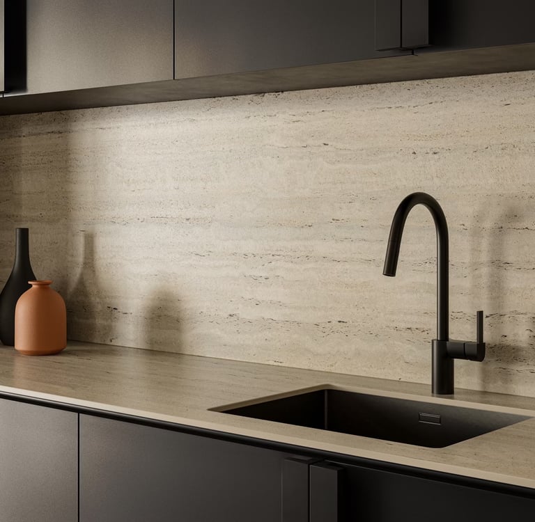 🏡 Universalumas – puikiai tinka virtuvės stalviršiams, vonios kambario apdailai, laiptams, sienoms, grindims, fasadams ir net lauko baldams.